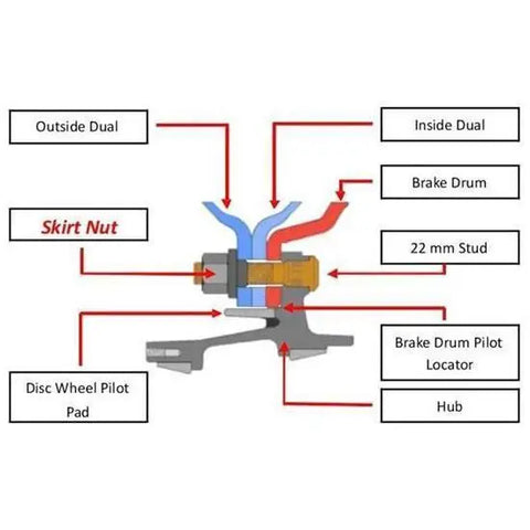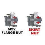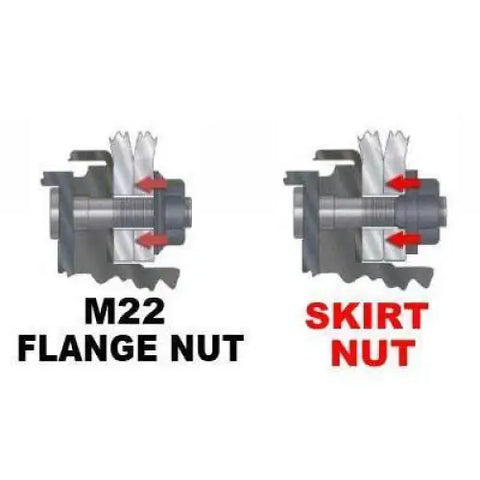 ESCO Skirt Nut Replace Stnd M22 Flange Nuts. Stops wheel/hub vibrations and many tire-wearing problems. No more loose wheels stop wheel movement (clocking) on the face of the hub.