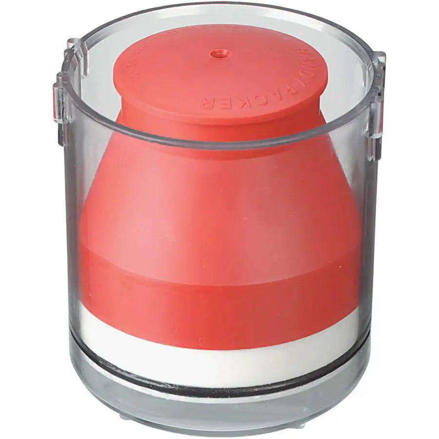 Quickly flushes out old grease and repacks bearings with less mess. The Handy Packer works on bearings up to 3-1/2 inch O.D. The grease stays in the tool cavity, not on your hands. To pack a bearing, place the bearing on the piston. Press down on the cap until the old grease is forced out and the new grease shows on top of the bearing.