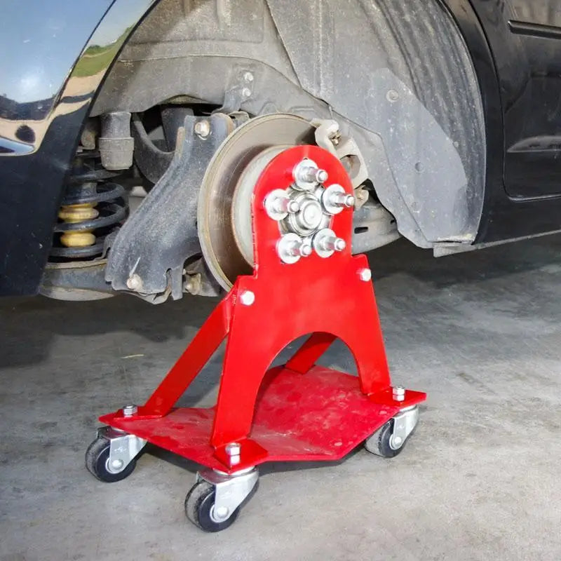 The Roll-Around Attachment will fit either of our 12in Auto Dolly (Standard or Heavy Duty). Once attached, you have unimpeded access to the wheel well areas (with the tires/wheels removed) and yet can still move your vehicle in any direction. A real boon to auto restoration projects, painting, and bodywork. (Now you don't have to disturb your masked-off doors to move the vehicle!) Also facilitates an orderly shop or garage and makes sweeping & cleaning so much easier too!