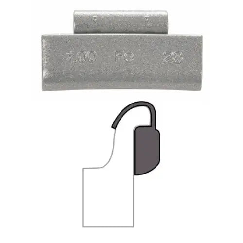 AA "AW" style clip-on wheel weight. An economical alternative to lead AW weight is used on a wide array of passenger cars and light trucks with alloy wheels.