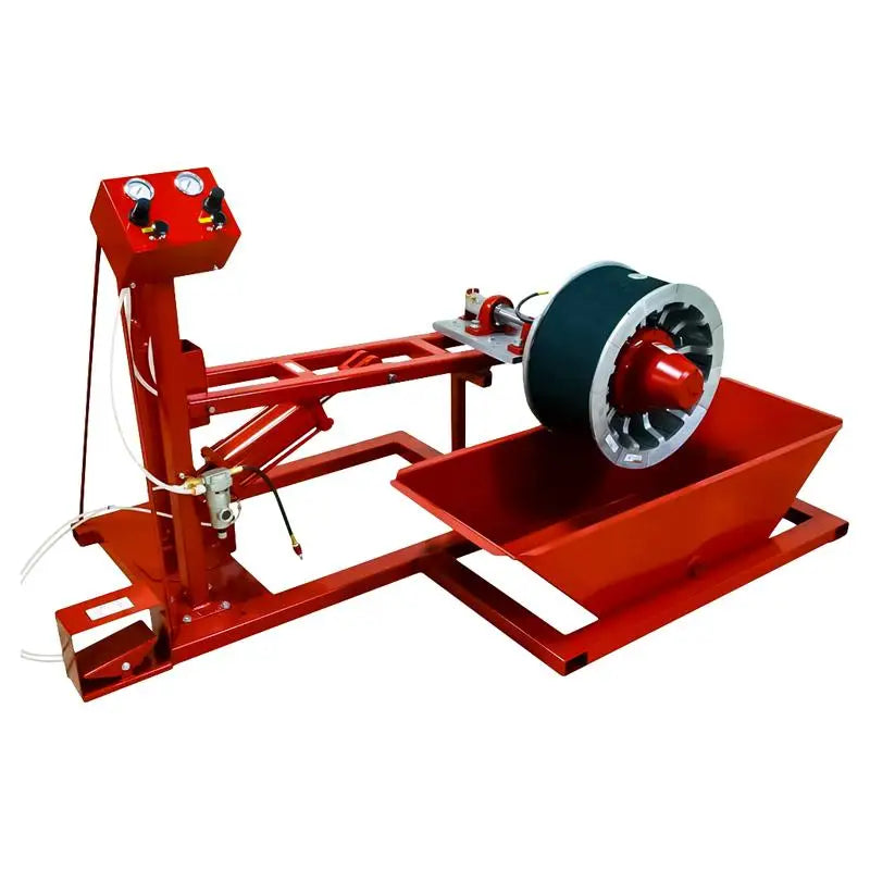 The TI-96 Tire Inspector is designed to inspect nonmounted tires from 13 to 24.5 inches using an expandable hub and rim assembly. The TI-96 Tire Inspector allows the operator to check tires for sidewall, tread, and bead leakage utilizing a dunk test tank. A foot-operated power lift will save time and injury by lifting those large casings from the floor into the test tank. Quick and easy inspection is accomplished using an expandable hub and expandable rim assemblies. The TI-96 tire and hub assembly rotate smoothly for inspection, and all operating controls are located on the side of the machine for smooth operation. A standard 1/4in, 90 PSI airline operates the unit, and no electricity is required. We recommend the use of a good-quality dual-stage compressor for optimum results.