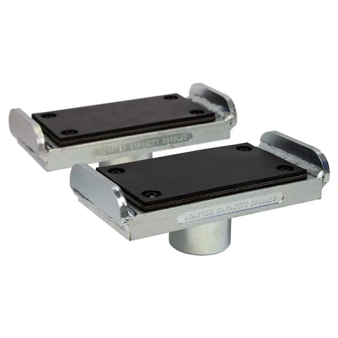 Specifically designed for the Trio arms engineered by Rotary these adapters have a collar that's a little larger to work with the movable second stage design. These adapters replace the current ones used and are wider to fit the frame of the vehicle. You'll replace the front two adapters on the lift and continue to use the current ones you have for the rear pick-up points.