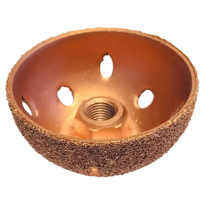 AA 2-inch diameter vented tungsten carbide contour rasps with inside nut make buffing the injury area and removing the rubber very easy. Three-inch rasps require 3/8 in. or 1/2 in. arbors; 4 in. rasps require 1/2 in. or 5/8 in. arbors.