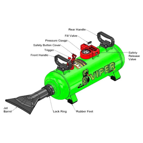 TSI Viper VP18AL is an 18 Liter aluminum bead seater. The new jet barrel design greatly increases air volume delivery. The Viper Bead Seater line is designed to works on a large range of tires, everything from lawn and garden tires to agriculture and construction tires.