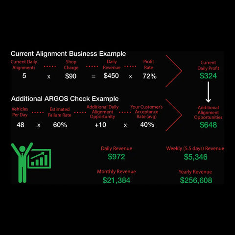 Boost your business efficiency with Argos and enjoy increased customer satisfaction. By minimizing efforts and time for wheel alignment measurements, you can serve more customers and deliver exceptional service. Argos's "Full" model is just one of three available options. Choose the "High" model for adjustments with a lift, or the "Pit" model for reception lanes and adjustments in a pit. No matter which version you choose, Argos is a game-changer in the world of wheel alignment, offering speed, accuracy, and unparalleled simplicity. Elevate your business today with Argos and experience the difference it can make.