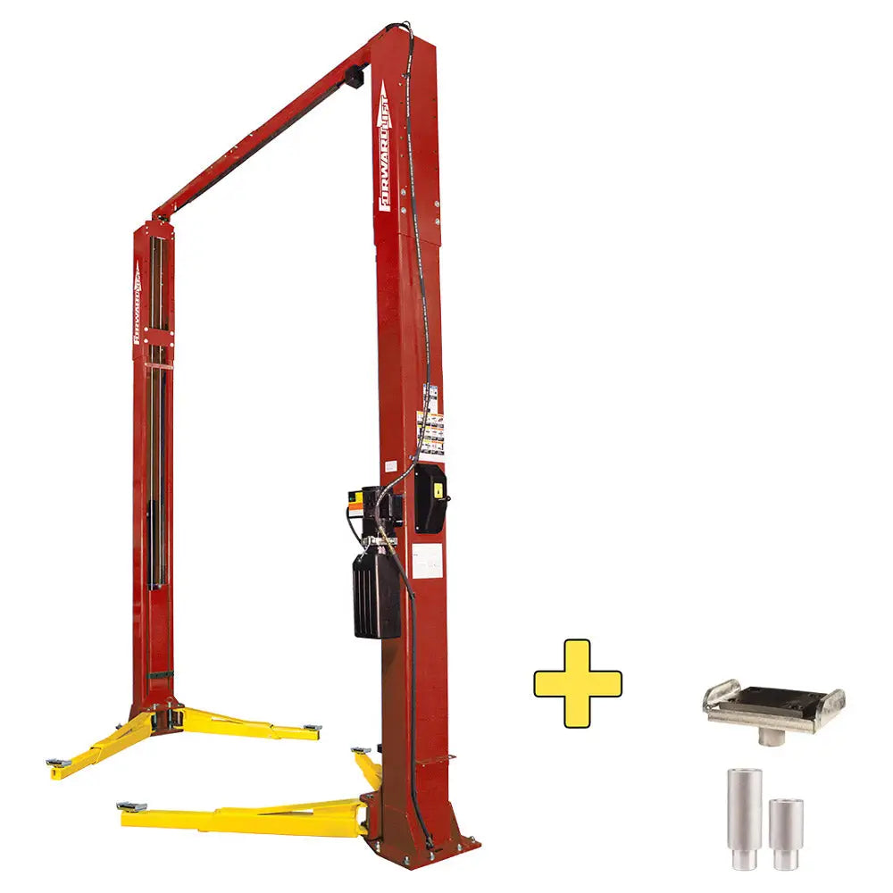 Forward’s F12 two-post lift is gold certified with a 12,000-pound capacity for raising most passenger cars, trucks, and vans. Two heavy-duty push hydraulic cylinders are designed to increase lift performance and minimize downtime, and cylinders are located in each column concealed within the carriage itself. A durable powder coat finish provides exceptional protection from the wear a shop will see over the years. Forward’s spring-operated arm restraints are just one feature that keeps these heavy-duty lift arms constantly performing at their peak performance.