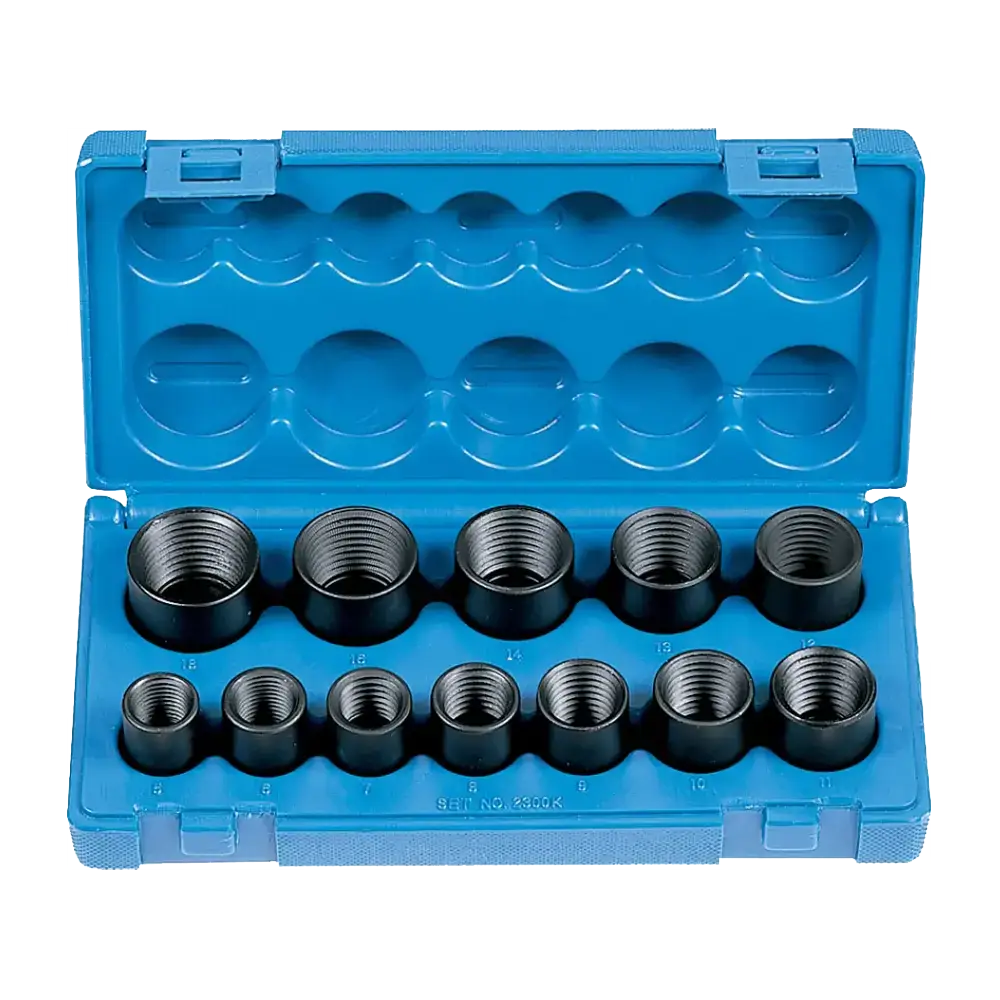 Are you struggling with seized or rounded nuts? The GP 2300K Damage Nut Remover set, featuring 12 high-strength impact sockets, quickly extracts damaged hex and lug nuts from 1/2in (13mm) to 1 & 1/16in (27mm). Designed for use with 1/2in drive impact tools, this set eliminates the frustration of stubborn fasteners, saving valuable time and increasing shop efficiency.