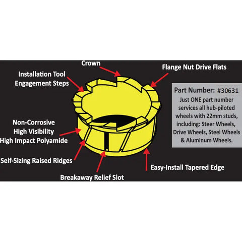 International patent pending design works in conjunction with hub-piloted mounting systems and OEM style 2-piece flange nuts, assuring a centered wheel, and eliminating radial runout.