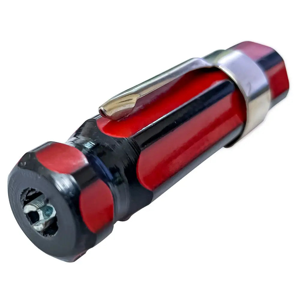 Looking to avoid damaging your tire and rims in hard-to-reach places? Check out our AA valve core tool! This screwdriver-type handle is perfect for limited access areas such as Dually tires. Plus, it comes with a handy pocket clip for easy storage.