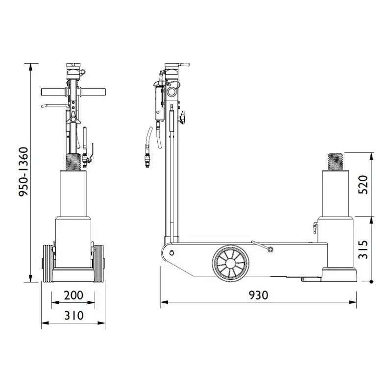 AC Hydraulic 65 Ton Aircraft Jack with Extra Long Stroke - 65-1APH