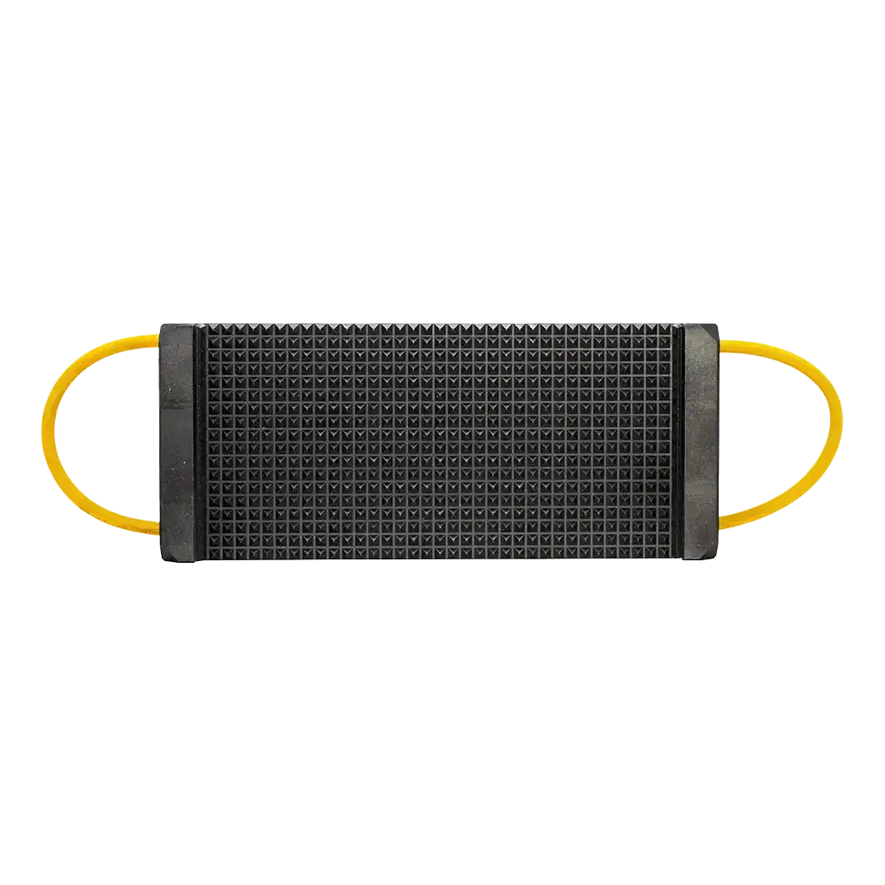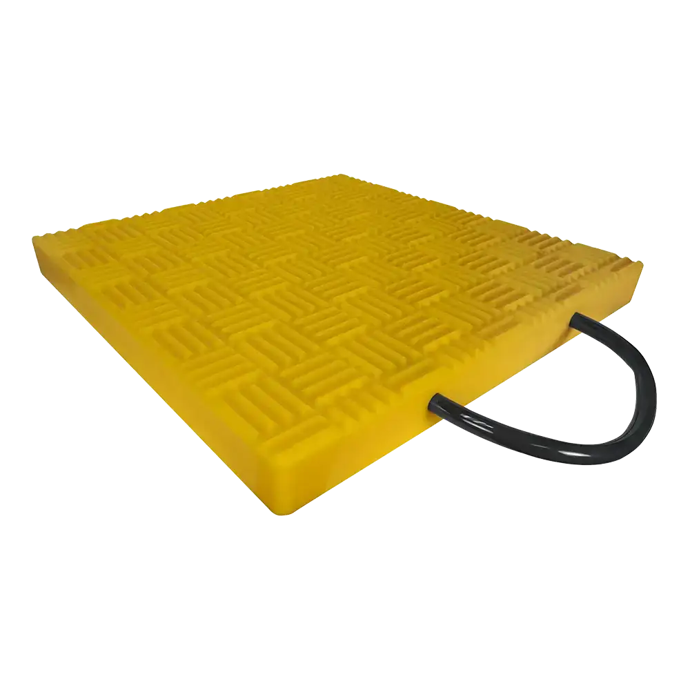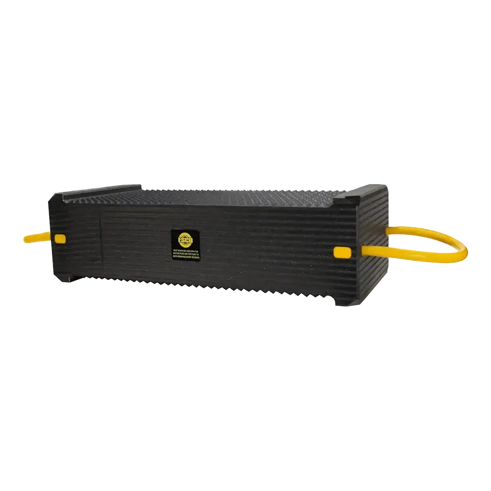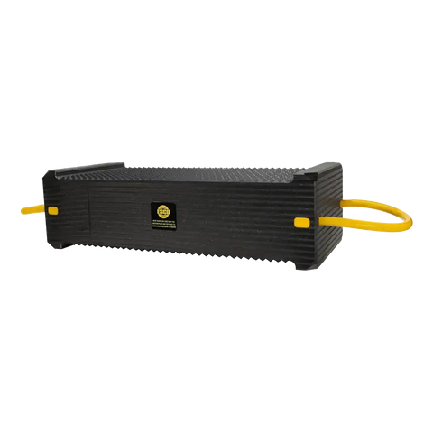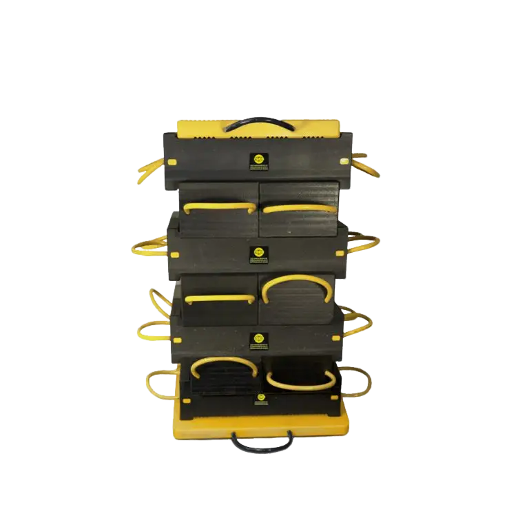 Black and yellow Esco cribbing blocks with handles and stability plates for support