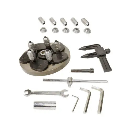 Essential for the more precise wheel balancing, this plate kit comes with 5 centering pin adapters to fit most cars and light trucks, imported and domestic. The specially designed lug bolt adaptors balance wheels far more accurately than a cone by itself. The result is a smooth, vibration-free drive for you and your clients. Includes flange plate kit and measuring caliper.