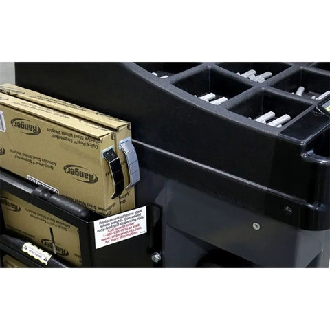 - The newly designed side shelf features an open-top design that accommodates Ranger Quick-Peel™ adhesive tape weight convenient bulk rolls.