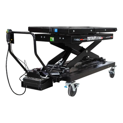 Upgrade your service capabilities with the Rotary LT35A, an air-operated hydraulic lifting table with a 3,500 lbs capacity, specially designed for electric vehicles. This model is engineered for safety and efficiency, featuring patent-pending adjustable features for easy positioning and battery handling. Its air-operated mechanism and mechanical locks ensure stable operation, while the extra-wide base provides enhanced stability. Compatible with the RT30 repair table, this versatile upgrade enables seamless removal and installation of heavy vehicle components, making it an essential addition to your workshop for servicing electric vehicles.