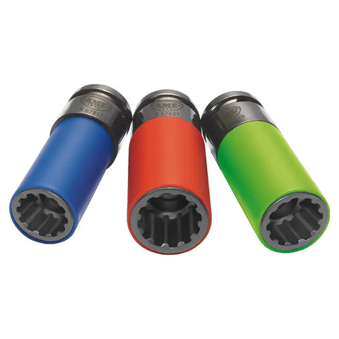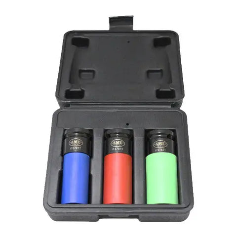 AME 67800 Metric 17mm, 19mm, and 21mm Spline Plus Socket Set for damaged lug-heads.