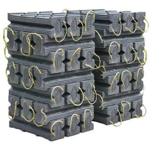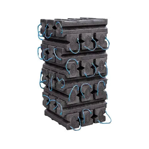 Premium Cribbing Block Kits: Industrial cribbing blocks are designed to provide superior crib stability compared to standard hardwood and softwood products. They will not fail catastrophically like wooden cribbing. In addition, unlike wood products, industrial cribbing blocks do not splinter or absorb most fluids. Convenient sizes help to quickly and safely build stable cribs to support loads.