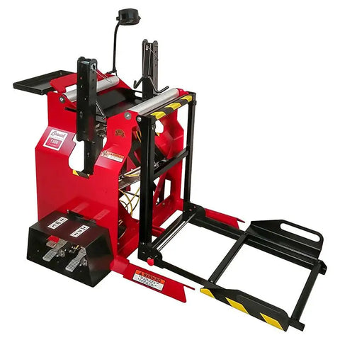 The Model 5300 is perfect when working with a heavy tire. Improve shop safety by reducing back strain while lifting a tire. It comes with air powered tire spread and tire lift it saves time and made lifting tires a breeze. The foot operated controls keep both hands free to work on the tire and the RMA compliant LED light makes it easy to see and lasts a long time. Zinc plated rollers make rotating the tire a breeze and the lift out debris tray makes clean up easy. The attached tool tray keeps everything you need within reach. You get all this in a space-saving footprint with a lift that locks up or down to keep it out of the way when not in use. Made in the U.S.A. at Branick's manufacturing facility in Fargo, ND