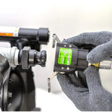The ESCO Calcium Chloride Liquid Transfer Pump is designed to transfer up to 50 gallons per minute transferring fluid from one container to another quickly and easily. Works with multiple fluid applications including calcium chloride, water, methanol, oil, anti-freeze, coolants, tire liquids, and more. The design and functionality of Model 10543 are specifically designed for transferring calcium chloride or other mediums into tire/wheel assemblies to aid in creating ballast with the tire/wheel. Fully assembled and ready to use out of the box, this kit includes two 10 ft. hoses, a liquid ejector gun, quick safety-connection "cam-locks", a 4-way metal control valve, and an air regulator.