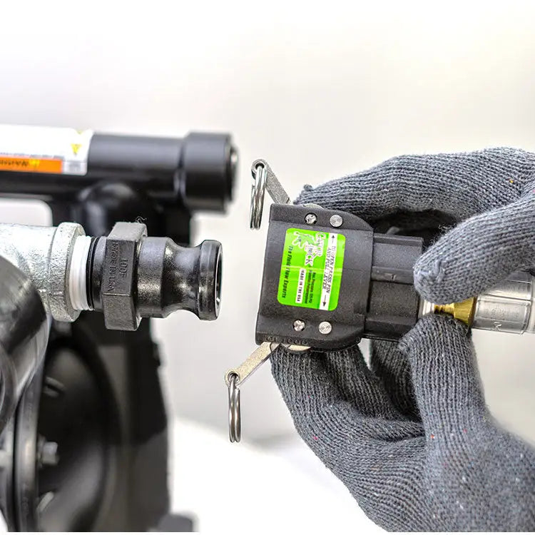 - NEW Easy to use safety-secure quick connection "Cam-Lock" couplers on the hose ends for better transport, storage, and cleaning of hoses and unit - Extends the life of the hoses, pump, and accessories