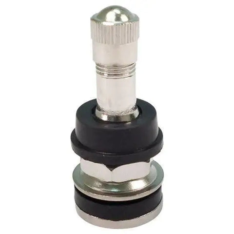 The TR416 is a high-quality clamp-in tubeless tire valve for passenger vehicles and light trucks. It features a nickel-coated metal stem for durability and corrosion resistance, with a standard bore valve size. The valve includes a chrome metal cap with a grip seal, making it easier to handle and less likely to slip during installation or removal. Designed for easy installation and maintenance, the TR416 offers a secure fit for various wheel types and can withstand high pressures. Its combination of functionality and sleek appearance makes it a popular choice for modern automotive applications.