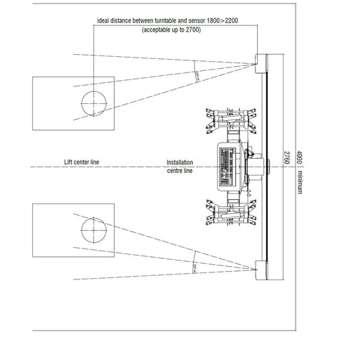 Recommended Installation Distance: 6-1/2 ft from the center of the turn plates on the rack to the cameras of the boom, measuring straight and not downwards at an angle.
