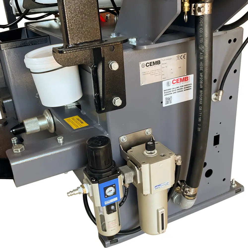 CEMB SM825 EVO electric powered swing arm tire changer is best suited for gas stations, small garages, and auto salvage yards. Comes fully assembled.