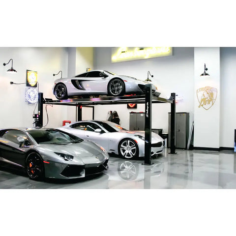 Challenger CL4P9S, CL4P9X, and CL4P9W 4-post home car lifts are perfect for light-duty commercial service or storage applications. Challenger Lifts 9,000 lbs. 4 post lift and commercial service lift units give you unlimited options for your shop's layout.
