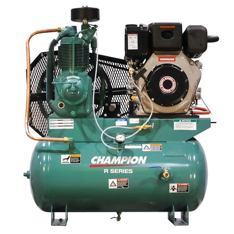 Champion Model HDR5-8Y R-Series R2-30A, 9.3 HP Yanmar Diesel Engine Driven, Horizontal Air Compressor. R-Series Compressors are loaded with features designed for high performance and tremendous value.