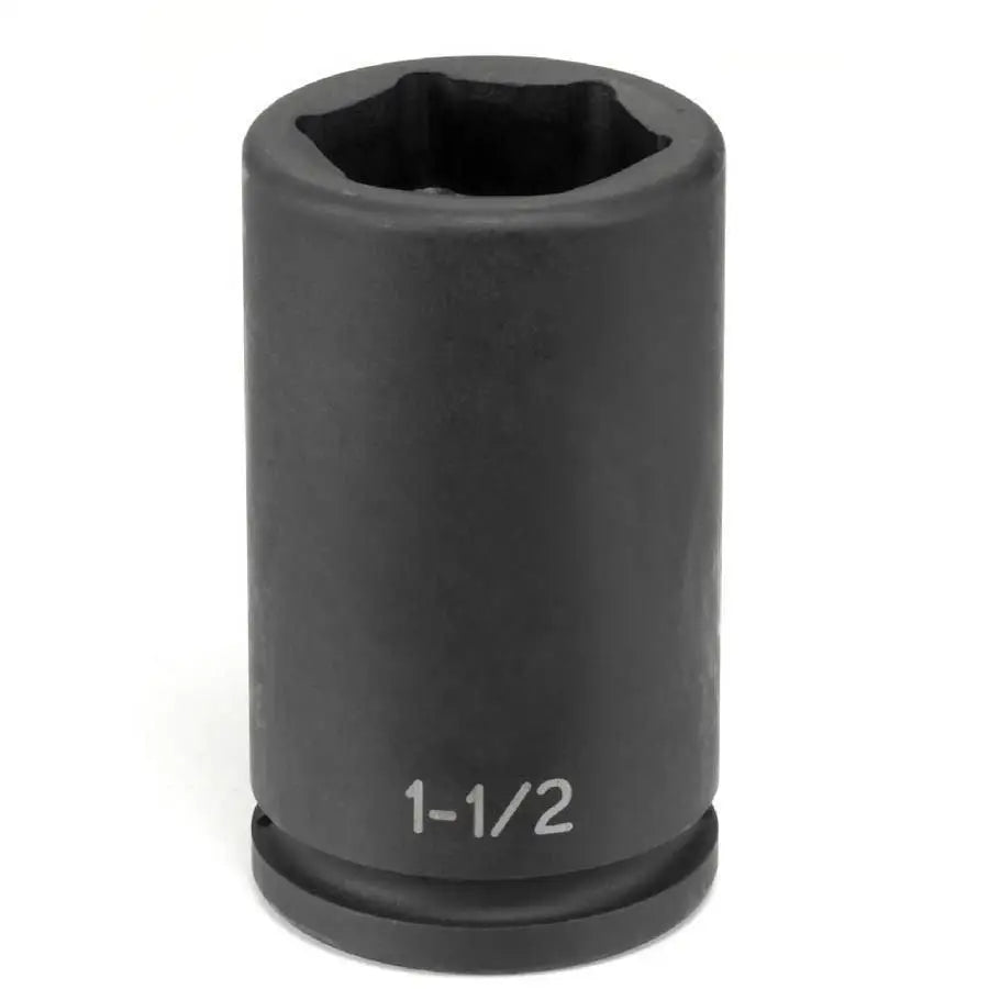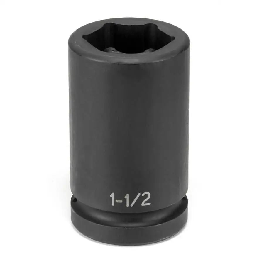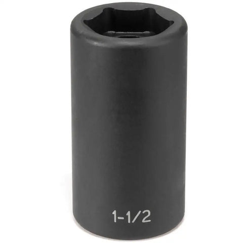 Special 1-1/2in hex deep heavy duty impact socket designed for outer cap nuts on Budd-style truck wheels. The 1-1/2in hex depth is limited to help prevent socket contact with the wheel. The socket is the deep style to eliminate contact with the inner cap nut.
