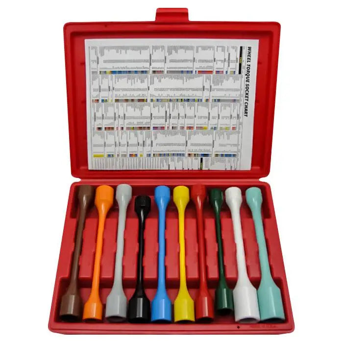 Ken-Tool torque wrench is designed to tighten nuts to factory specifications each time the wheels are replaced. Come is 6 and 9 pieces set.
