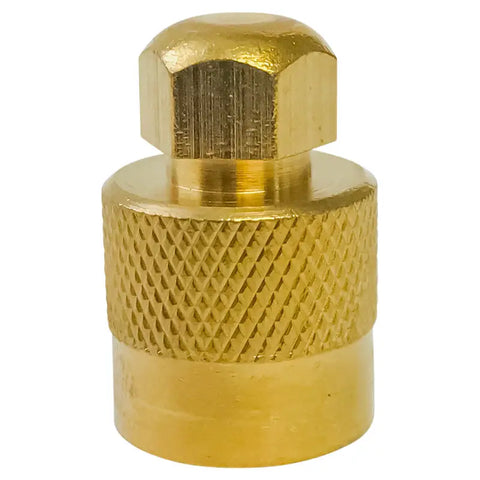 Large bore hexagonal top cap for easy tightening and removing with a wrench. Fits 0.482-26 valve cap.