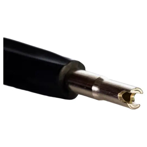 Valve core tool is for the removal and insertion of valve cores. One end for is for a standard bore, while one end is for large bore valves. The overall length of 5in, this valve core tool has a 3in handle length.