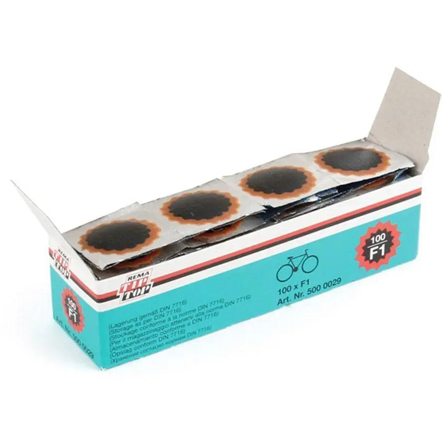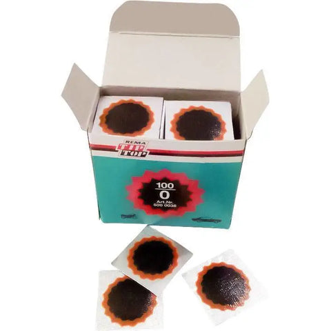 Rema Tip Top feather edge patches are designed for repair of bicycle, bike, car, light truck tubes. When installed with Cold Vulcanizing Fluid, Rema tube patches will stretch evenly in all directions, resulting in a perfect bond and seamless repair.
