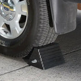 - Either side of wheel chock can be positioned against the tire
