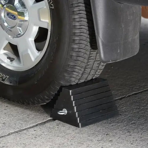 Molded rubber wheel chocks allow for ease of placement and drop-kick safety.